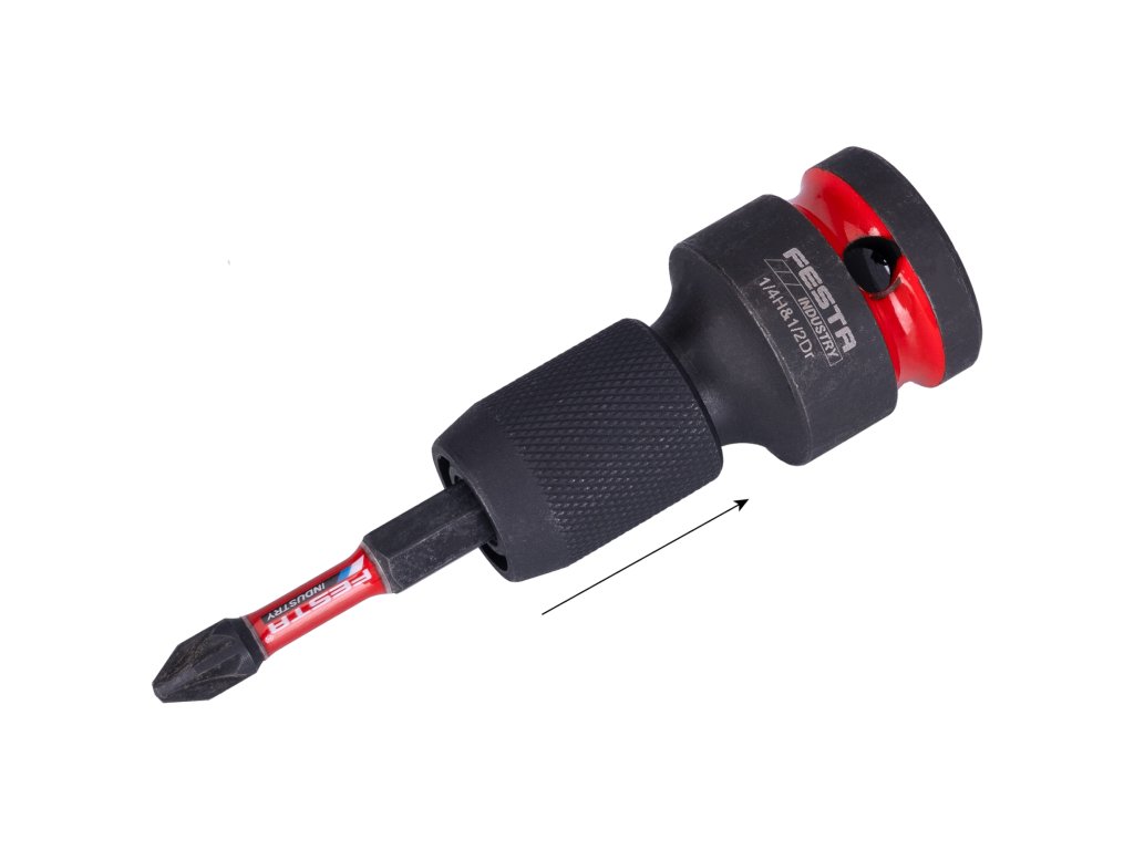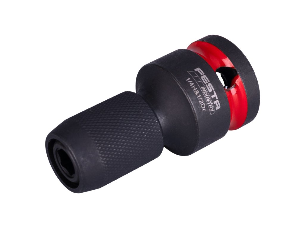 Adaptér FESTA INDUSTRY Cr-Mo, 1/2" na 1/4" Nástřčný rázový adaptér FESTA INDUSTRY je určen pro redukci čtyřhranu 1/2" na šestihran 1/4" a je vhodný pro použití s rázovými utahováky. Umožňuje bezpečné a efektivní použití torzních a rázových bitů v aplikacích, kde je vyžadován vyšší krouticí moment.Adaptér je vyroben z vysoce kvalitní legované oceli Cr-Mo (chrom-molybden), která zajišťuje vysokou pevnost, houževnatost a dlouhou životnost i při náročném rázovém zatížení. Šestihran 1/4" s pojistkou zajišťuje spolehlivé uchycení bitu a zabraňuje jeho nechtěnému uvolnění během práce. Precizní zpracování zaručuje přesné dosednutí a bezpečný přenos síly.Klíčové vlastnosti:• rázový adaptér FESTA INDUSTRY • redukce 1/2" čtyřhran › 1/4" šestihran • materiál Cr-Mo (chrom-molybden) • šestihran s pojistkou pro bezpečné uchycení bitu• určen pro rázové utahováky • vysoká odolnost proti rázovému zatížení✔ rázové utahováky✔ práce s torzními a rázovými bity✔ montážní a servisní práce✔ profesionální použitíTechnické parametry:• typ: rázový adaptér • vstup: 1/2" čtyřhran • výstup: 1/4" šestihran s pojistkou • materiál: Cr-Mo ocel • hmotnost: cca 0,09 kgAdaptér FESTA INDUSTRY Cr-Mo 1/2" na 1/4" je spolehlivý doplněk pro profesionály, kteří potřebují bezpečný a odolný adaptér pro rázové nářadí a práci s vysokým krouticím momentem.Doplňkové parametry