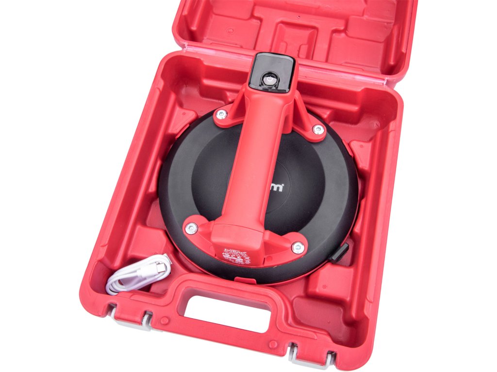 Přísavka aku s automatickým udržováním podtlaku FORTUM, ⌀ 200 mm, 150 kg Akumulátorová vakuová přísavka FORTUM je profesionální nástroj určený pro bezpečnou manipulaci, zvedání a přesné usazování hladkých materiálů. Díky automatickému udržování podtlaku zajišťuje konstantní přilnavost po celou dobu práce bez nutnosti ruční korekce. Integrovaný elektronický systém průběžně hlídá úroveň podtlaku a v případě jeho poklesu jej automaticky obnovuje.Přísavka je vhodná zejména pro práci se sklem, keramikou, dlažbou, obklady, leštěným kamenem, laminovanými deskami, kovovými a plastovými povrchy. Digitální displej zobrazuje aktuální sací sílu a stav akumulátoru, což zvyšuje kontrolu i bezpečnost při manipulaci s těžkými dílci.Klíčové vlastnosti:• automatické elektronické udržování podtlaku během práce• digitální LED displej zobrazující sací sílu (kg) a stav baterie• vysoká nosnost při horizontální i vertikální manipulaci• bezpečné uchopení hladkých, neporézních materiálů• ergonomická rukojeť pro jistý a pohodlný úchop• kompaktní konstrukce vhodná pro montážní a obkladačské práce✔ manipulace se skleněnými tabulemi a zrcadly✔ pokládka a osazování dlažby a obkladů✔ práce s leštěným kamenem, kompozity, kovovými a plastovými deskami✔ montážní, obkladačské, sklenářské a stavební práceTechnické parametry:• typ: akumulátorová vakuová přísavka• maximální nosnost: 150 kg • napájení: 3,7 V (Li-ion) • kapacita akumulátoru: 2,0 Ah (2 000 mAh) • průměr přísavky: 20 cm • délka rukojeti: 110 mm • doba nabíjení: cca 4 hodiny ⚠ Upozornění Používejte pouze na čistých, suchých a hladkých površích. Nepřekračujte maximální nosnost zařízení a nepoužívejte přísavku na mokrých, porézních nebo nerovných materiálech.Aku vakuová přísavka FORTUM ⌀ 200 mm představuje spolehlivé řešení pro profesionály, kteří vyžadují maximální bezpečnost, přesnost a komfort při manipulaci s těžkými hladkými materiály. Automatické udržování podtlaku, přehledný digitální displej a vysoká nosnost z ní činí ideální nástroj pro obkladače, sklenáře i montážní firmy.Doplňkové parametry