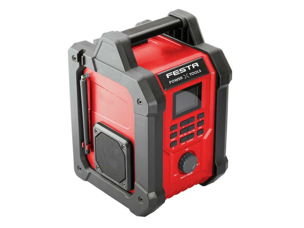 Akumulátorový reproduktor s rádiem na poslouchání FM a DAB stanic. Umožňuje nejen přijímání rádiového signálu, ale i poslech přes Bluetooth, nebo z externího média připojeného pomocí AUX in portu. Reproduktor podporuje všechny zvukové formáty. Vyniká skvělým výkonem a nevyžaduje téměř žádnou údržbu. Doba přehrávání (při maximální hlasitosti) je 6 hodin. Reproduktor je vybavený ochranou proti prachu a účinnou ochranou proti nárazům.Součástí balení je adaptér do sítě na 230V. Tento umožňuje použití rádia bez akumulátoru přímo ze zásuvky.Díky Li-ion akumulátoru je možné rádio kdykoliv dobíjet, aniž by se tím snižovala kapacita akumulátoru. Li-ion akumulátor také ztrácí energii vlivem samovybíjení velmi pomalu a vydrží dlouho nabitý.Toto rádio je dodáváno bez akumulátoru a nabíječky.Pro pohon je možné využívat kompatibilních akumulátorů řady SHARE20V z jiných strojů značky FESTA POWER TOOLS, ale i EXTOL SHARE20V a SCHEPPACH AKU.Seznam všech kompatibilních strojů a zařízení řady SHARE20V ZDEDoplňkové parametry