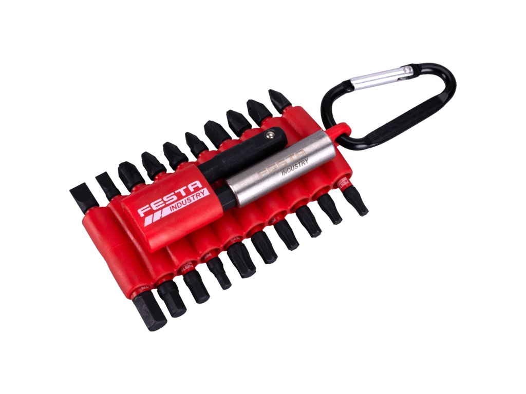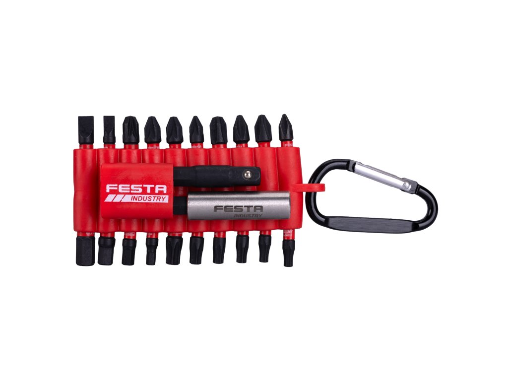 Sada torzních bitů INDUSTRY S2, 25mm, 21ks, FESTA Tato profesionální sada torzních bitů FESTA INDUSTRY je navržena pro maximální nasazení při práci s rázovými utahováky. Bity jsou vyrobeny z vysoce kvalitní oceli S2, která v kombinaci s torzní zónou zajišťuje extrémní odolnost proti prasknutí. Sada je ideální pro profesionální řemeslníky i náročné kutily, kteří hledají spolehlivé příslušenství pro náročné montážní práce.Klíčové vlastnosti:• Torzní technologie: Speciální geometrie a tepelné zpracování bitu efektivně snižují vnitřní pnutí. To dodává bitu potřebnou pružnost v krutu, díky čemuž nedochází k praskání hrotu ani při vysokých rázech utahováku.• Kvalitní ocel S2: Použitý materiál vyniká vysokou tvrdostí a dlouhou životností, což minimalizuje opotřebení hrotu.• Precizní opracování: Hroty bitů jsou vyrobeny s vysokou přesností, což zaručuje dokonalé zapadnutí do hlavy šroubu nebo vrutu a zabraňuje jejich vyskakování.• Praktické pouzdro: Celá sada je uložena v kompaktním plastovém držáku s karabinou, který umožňuje snadné zavěšení na opasek nebo brašnu, takže máte bity vždy po ruce.Pouřití:✔ Určeno zejména pro rázové utahováky s vysokým kroutícím momentem.✔ Vhodné pro šroubování konstrukčních vrutů do dřeva a montáž v kovovýrobě.✔ Ideální pro intenzivní stavební a montážní práce v dílně i na stavbě.Technické parametry:• Materiál: ocel S2• Délka bitů: 25mm• Upínání: šestihran 1/4"• Počet kusů v sadě: 21Obsah balení:➡ Ploché (S): 1x4, 1x5.5➡ Křížové (PH): 1xPH1, 2xPH2, 1xPH3➡ Pozidriv (PZ): 1xPZ1, 2xPZ2, 1xPZ3➡ Imbus (H): 1xH3, 1xH4, 1xH5, 1xH6➡ Torx (T): 2xT15, 2xT20, 1xT25, 1xT30➡ Příslušenství: magnetický nástavec na bity (CrV), adaptér 1/4" šestihran na 1/4" čtyřhran s kuličkou➡ Plastový držák s karabinouSada torzních bitů FESTA INDUSTRY představuje špičkové řešení pro efektivní šroubování bez rizika častého lámání nástrojů. Díky torzní zóně a odolné oceli S2 je tato sada jasnou volbou pro každého, kdo pravidelně používá rázové nářadí.Doplňkové parametry