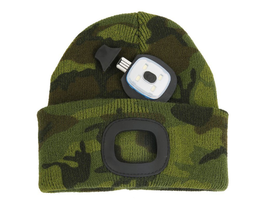 Čepice ALBACORE KID s čelovkou LED 60 lm, USB, vel. M dětská, kamufláž