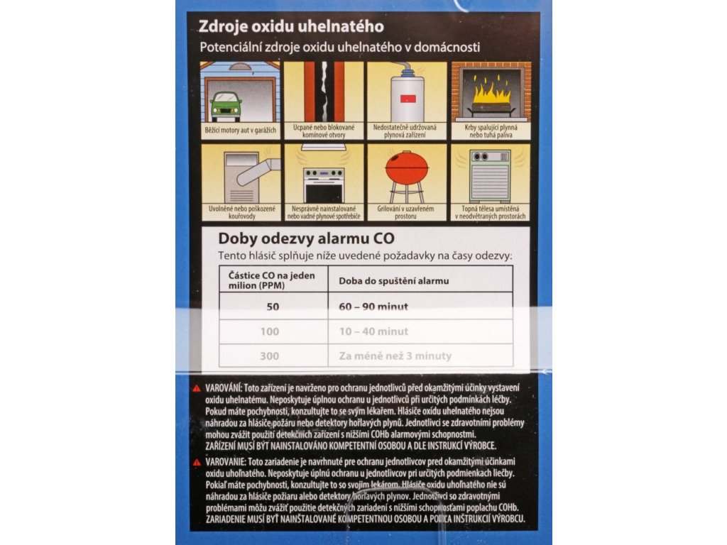 - Detekuje nebezpečný smrtící plyn CO - oxid uhelnatý - v daném prostoru - zvukově i vizuálně.