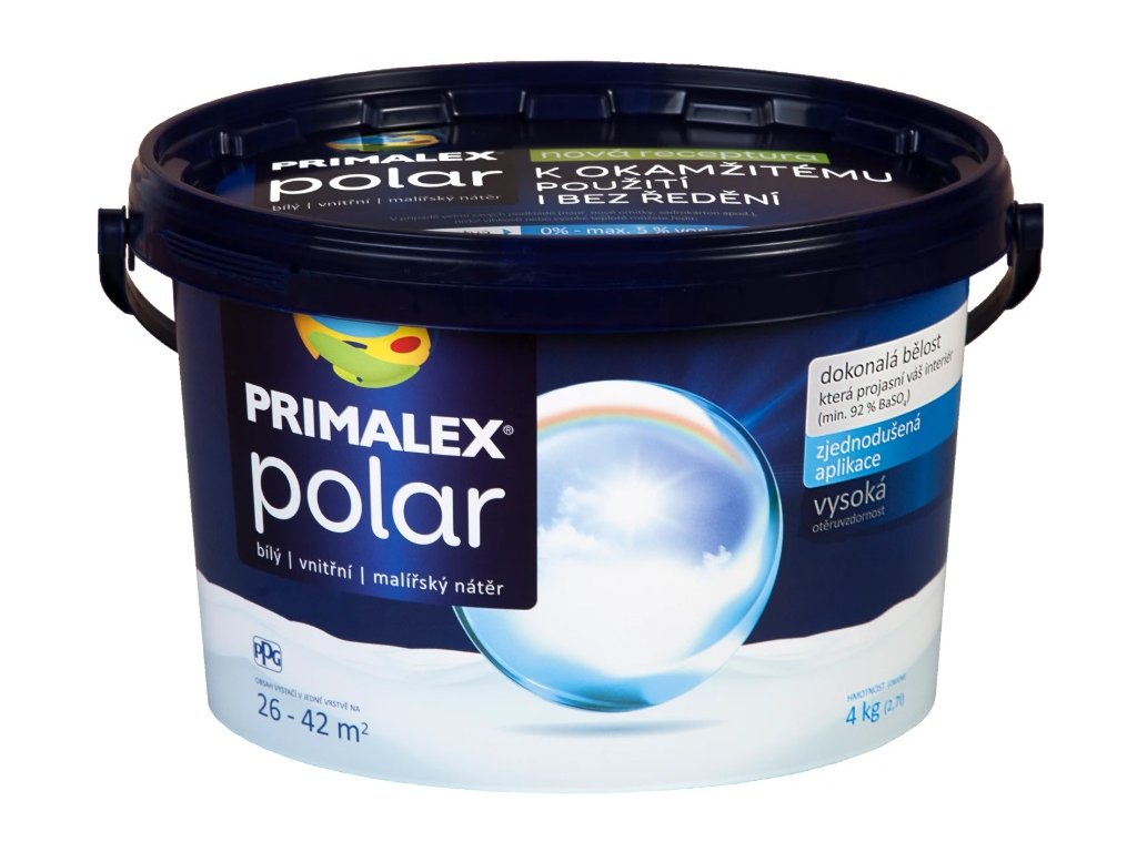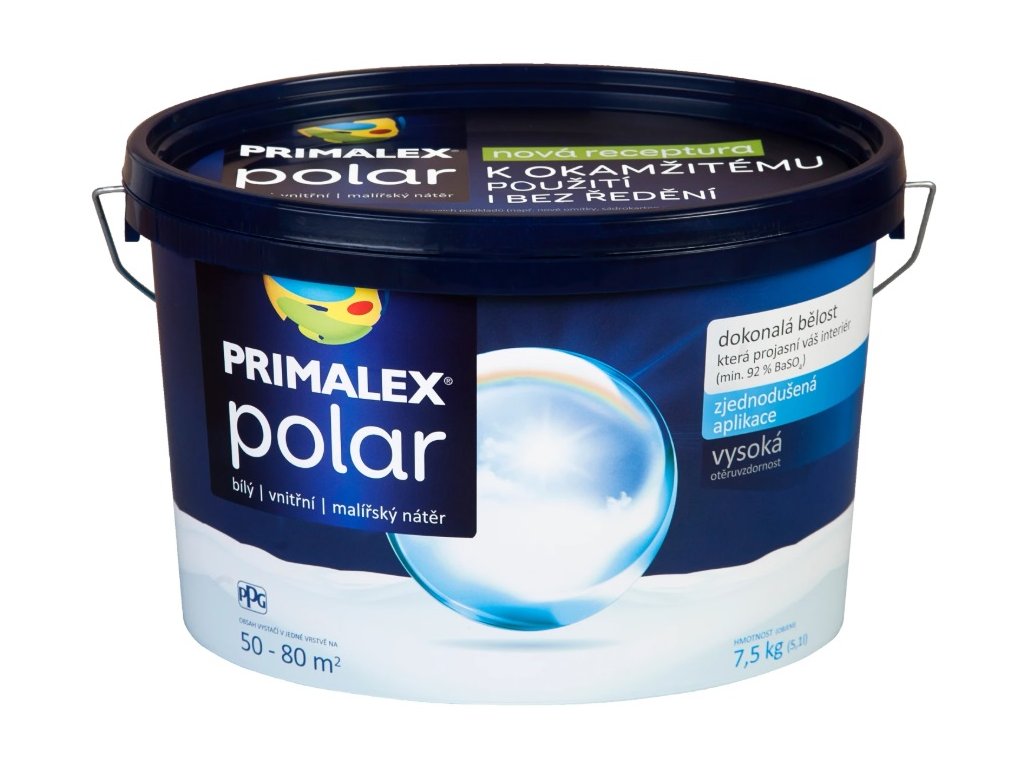 Primalex POLAR Bílý představuje špičkový interiérový nátěr, který kombinuje elegantní matný vzhled s praktickými vlastnostmi. Dosahuje dokonalé „polární“ bělosti (min. 92% BaSO4), která projasní každý prostor. POLAR je ideální pro reprezentativní interiéry s vysokými nároky na světlo a estetiku.