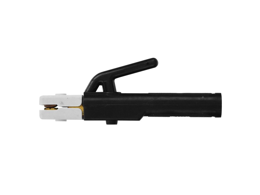 Držák elektrod slouží pro ruční svařování obalenou elektrodou. Rukojeť držáku včetně upínací hlavy je izolovaná pro maximální bezpečnost a vyrobena z materiálů mechanicky a tepelně vysoce odolných. Držák umožňuje pevné upnutí elektrody a to hned v několika upínacích drážkách v úhlech 45°, 90° a 180°.Průměr elektrody: 2,0 - 4,0 mm Max. svařovací proud: 400 A Průřez kabelu: 25 mm2 Hmotnost: 475 gDoplňkové parametry