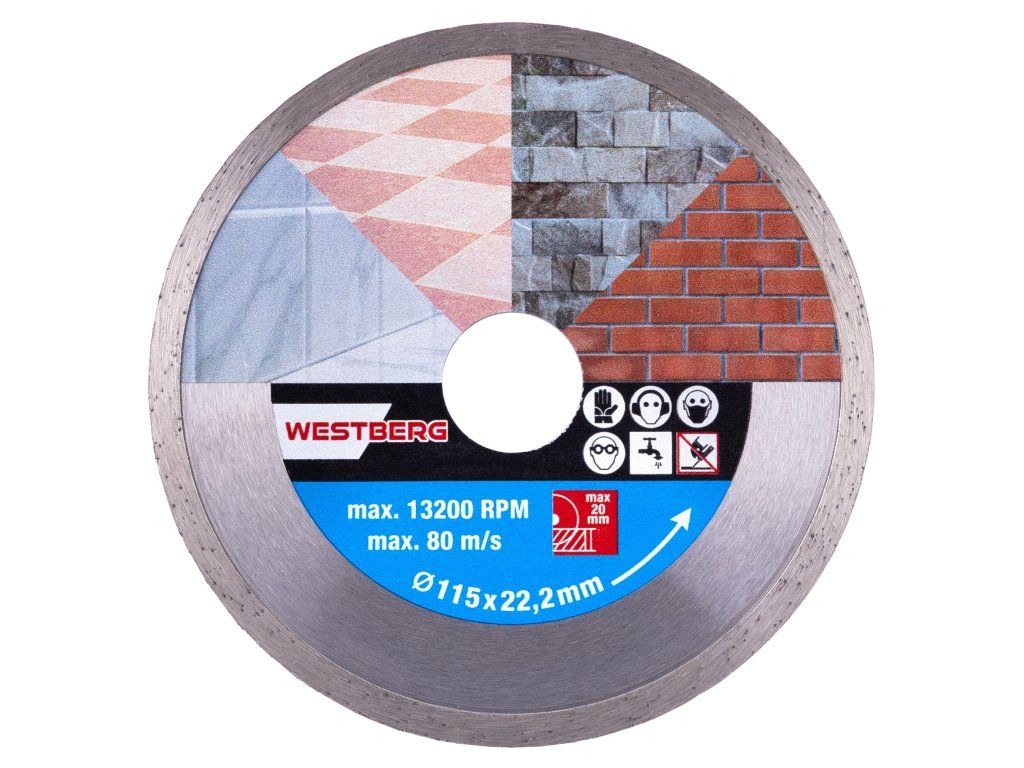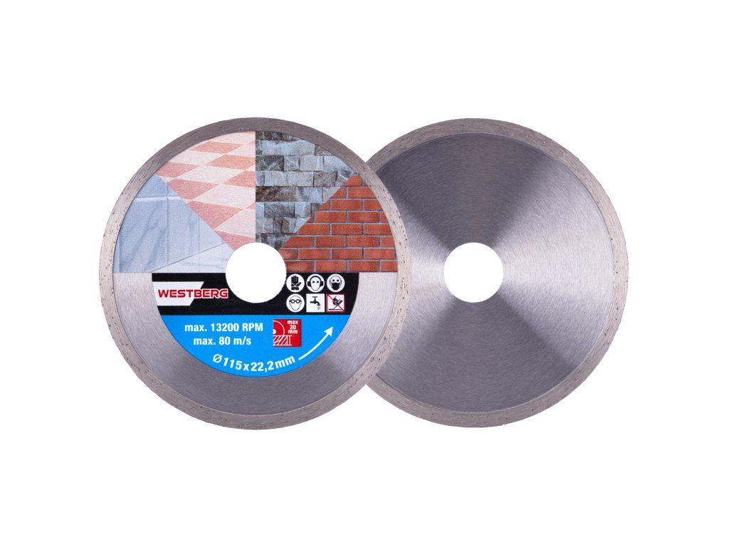 - Celoobvodový diamantový kotouč určený pro mokré i suché řezání dlažby a obkladů, betonu, cihel, zdiva, žuly, mramoru, kamene, skla, keramiky.