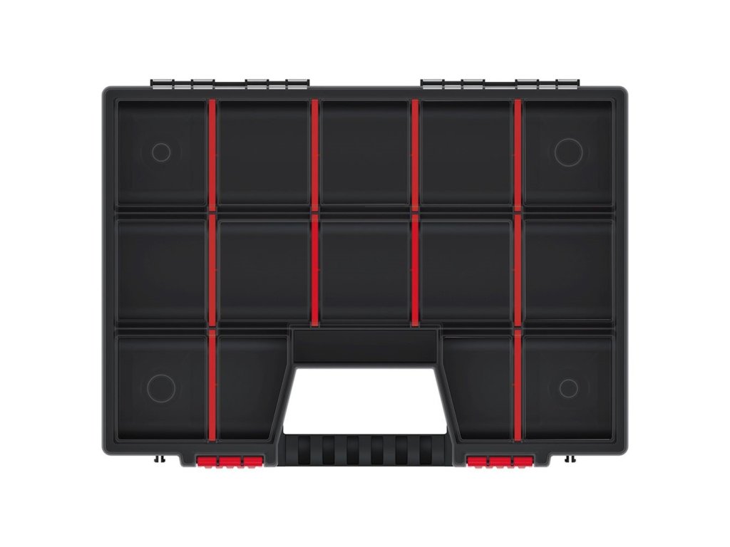 Plastový organizér na nářadí Kistenberg NOR 16 je praktický úložný box pro přehledné skladování a třídění drobného montážního materiálu. Díky nastavitelným přihrádkám si vnitřní prostor snadno přizpůsobíte přesně na míru šroubkům, maticím, hmoždinkám nebo menším součástkám. Je vhodný pro profesionální řemeslníky, automechaniky i domácí kutily, kteří potřebují mít ve své dílně dokonalý přehled. Jeho hlavní výhodou je lehká konstrukce a plně průhledné víko pro okamžitou vizuální kontrolu uloženého obsahu.Hlavní přednosti:• Variabilní uspořádání: Vyjímatelné a nastavitelné přepážky umožňují rozdělit vnitřní prostor podle aktuálních potřeb, takže nedochází k plýtvání místem.• Odolná konstrukce: Korpus je vyroben z pevné směsi polymerů, která zajišťuje dostatečnou tuhost a odolnost proti běžnému mechanickému opotřebení v pracovním prostředí.• Průhledné víko z PP Random: Poskytuje okamžitý přehled o zásobách bez nutnosti organizér otevírat, a navíc nabízí zvýšenou mechanickou odolnost proti prasknutí.• Bezpečné uzavírání: Pevné zaklapávací klipsy zabraňují samovolnému otevření během přenášení a fixují víko tak, aby se drobný materiál uvnitř nepromíchal.• Kompaktní profil: Výška pouhých 65 mm zaručuje, že organizér nezabere mnoho místa, snadno se přenáší a vejde se do většiny polic či dílenských vozíků.Použití:✔ Třídění a skladování spojovacího materiálu (šrouby, vruty, matice, podložky).✔ Ukládání drobných dílů a náhradních součástek v autoservisech či údržbě.✔ Přehledná organizace elektrikářských prvků, jako jsou svorky, pojistky a konektory.✔ Využití při hobby aktivitách, modelářství nebo pro organizaci běžných domácích potřeb.Technické parametry:• Rozměry (D × Š × V): 390 x 290 x 65 mm• Materiál korpusu: odolná směs polymerů (plast)• Materiál víka: PP Random (polypropylen)• Uspořádání: nastavitelné dělící přepážkyOrganizér Kistenberg NOR 16 představuje spolehlivé a vysoce flexibilní řešení pro každodenní organizaci drobných součástek a materiálu. Díky možnosti vlastního nastavení přihrádek a mechanicky odolnému provedení skvěle poslouží v profesionálních provozech, garážích i domácích dílnách. Je to ideální volba pro každého uživatele, který vyžaduje pořádek a rychlý přístup ke svému vybavení.Doplňkové parametry