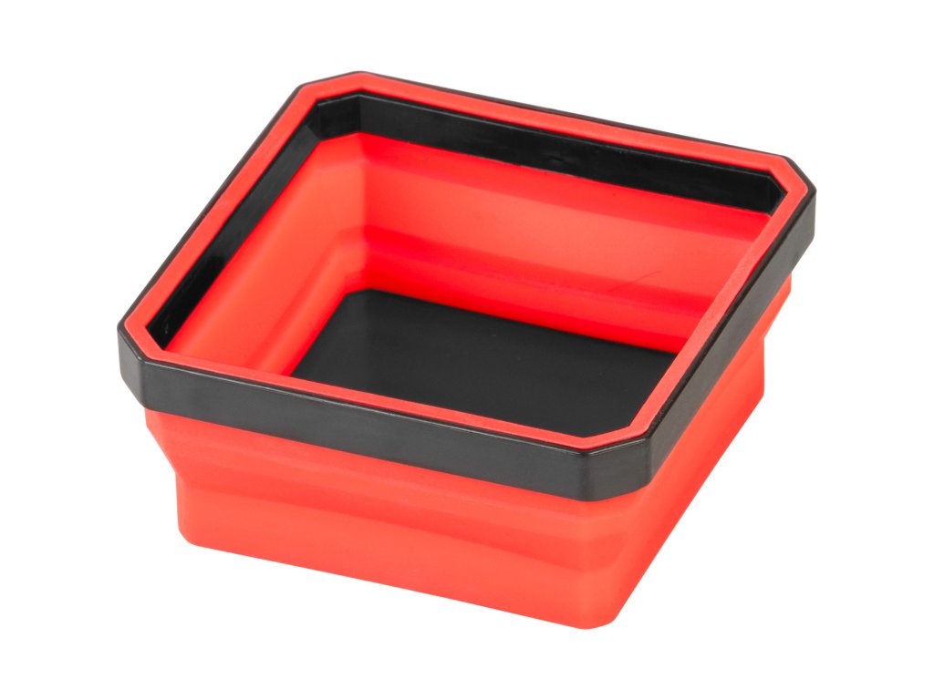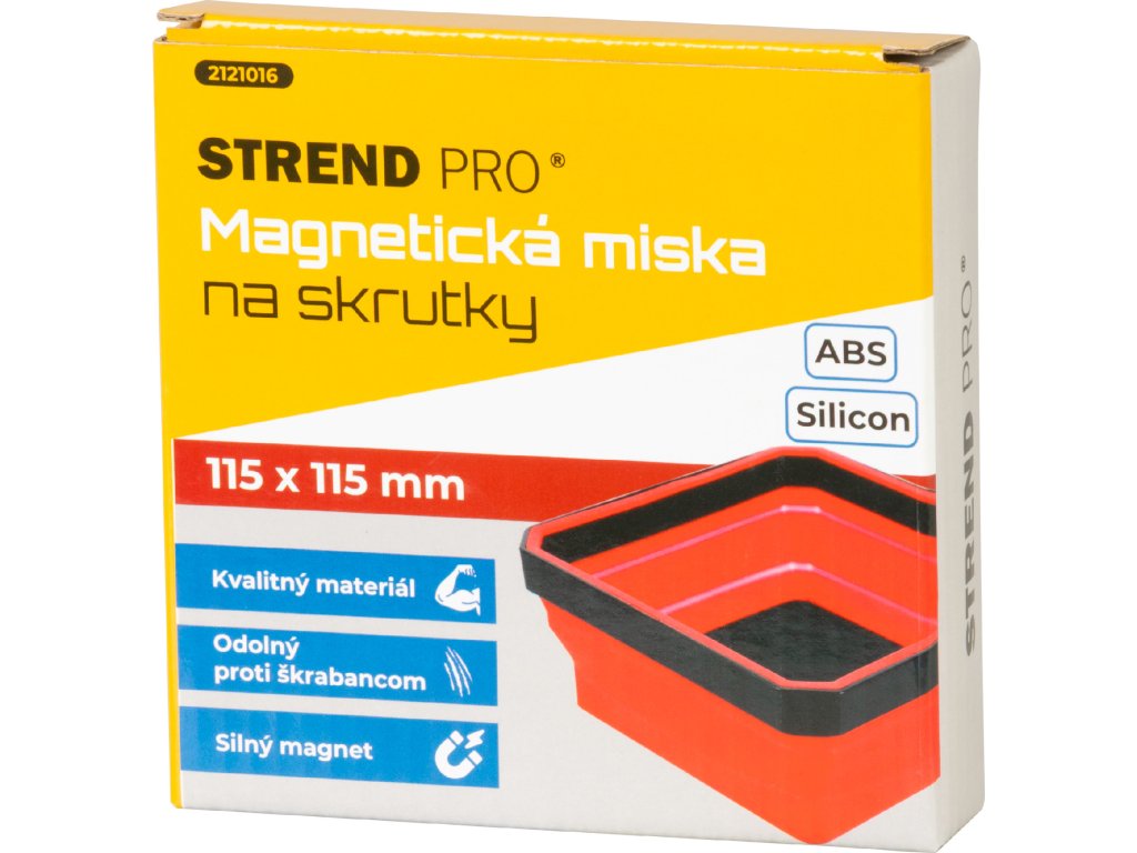 Skládací magnetická miska StrendPro, silikonová, 115 × 115 mmKompaktní a praktická skládací magnetická miska StrendPro je ideálním pomocníkem pro práci s drobnými kovovými díly, jako jsou šrouby, matice nebo hřebíky. Díky flexibilnímu silikonovému tělu a neodymovému magnetu na spodní straně pevně drží na kovových površích – dokonce i ve svislé poloze. Její skládací konstrukce šetří místo v nářadí, kufru i dílně.Hlavní vlastnosti:• Rozměry: 115 × 115 mm• Materiál: silikon + ABS plast• Magnet: silný magnet se stabilním uchycením na kovové povrchy• Vlastnosti: odolnost vůči poškrábání, snadná údržba, kompaktní rozměr• Barva: červeno černáUrčení:Ideální pro práci v autoservisech, domácích dílnách, montážních provozech nebo při opravách v terénu. Díky skládacímu provedení se hodí i do stísněných prostor nebo k mobilnímu použití.Silikonová skládací magnetická miska StrendPro je šikovné řešení pro každého, kdo potřebuje mít šroubky a další kovové díly bezpečně uchycené a vždy po ruce – a přitom šetřit místo.Doplňkové parametry