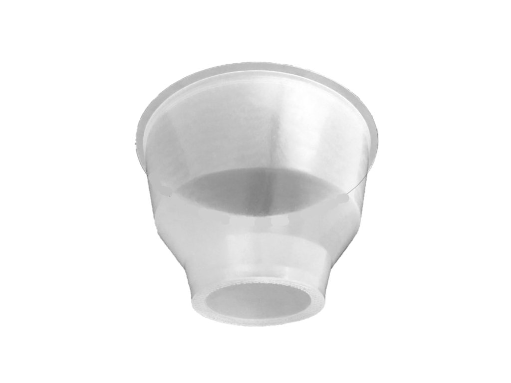 • Pokud barva obsahuje větší zrníčka nebo zbytky, doporučujeme nejprve hrubší síto (např. 100 µm) a poté tuto jemnější nálevku.