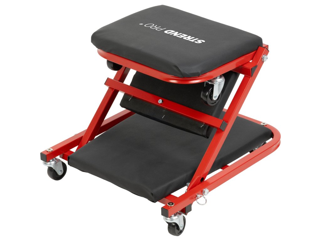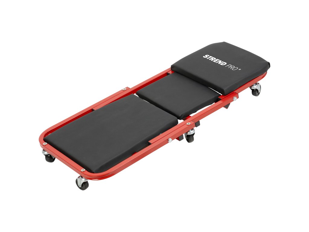 Lehátko Strend Pro – montážní, skládací 2 v 1, na kolečkách, 91 cm Montážní lehátko Strend Pro 2 v 1 je praktický pomocník do dílny, garáže i servisu. Umožňuje pohodlnou práci v poloze vleže pod vozidlem a jednoduchým překlopením jej lze během několika vteřin přeměnit na nízkou pojízdnou stoličku. Univerzální konstrukce tak šetří místo i náklady na další vybavení.Čalouněné plochy zajišťují komfort i při delší práci, zatímco pevná ocelová konstrukce poskytuje dostatečnou stabilitu a dlouhou životnost. Otočná kolečka umožňují snadný pohyb ve všech směrech bez nutnosti vstávání.Díky skládacímu provedení je lehátko nenáročné na skladování a snadno se přenáší.Klíčové vlastnosti:• 2 v 1 – lehátko i stolička • Rychlá přestavba podle potřeby• Pohodlné čalouněné plochy• Pevná ocelová konstrukce• Otočná kolečka pro snadnou manipulaci• Skládací konstrukce – úspora místaVhodné pro servisní, montážní a údržbové práce, zejména při práci pod automobily, motocykly nebo stroji. Ve formě stoličky ideální pro práce v nízké výšce, například při montáži kol, brzd nebo detailních opravách. Určeno pro použití na rovném a pevném povrchu.Technické parametry:• Typ: montážní pojízdné lehátko / stolička• Délka lehátka: 91 cm• Rozměry lehátka: 91 × 42 × 12 cm• Rozměry stoličky: 45,5 × 42 × 37 cm• Max. nosnost (lehátko): 150 kg• Max. nosnost (stolička): 120 kg• Hmotnost: 5,3 kgStrend Pro 2 v 1, 91 cm je univerzální montážní lehátko se skládací konstrukcí a funkcí stoličky. Nabízí pohodlí, mobilitu a pevnost v jednom praktickém řešení pro každou dílnu či servis.Doplňkové parametry