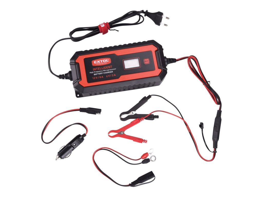 Nabíječka autobaterií, 9 stupňů, mikroprocesor, 6/12V, 8A, EXTOL PREMIUM