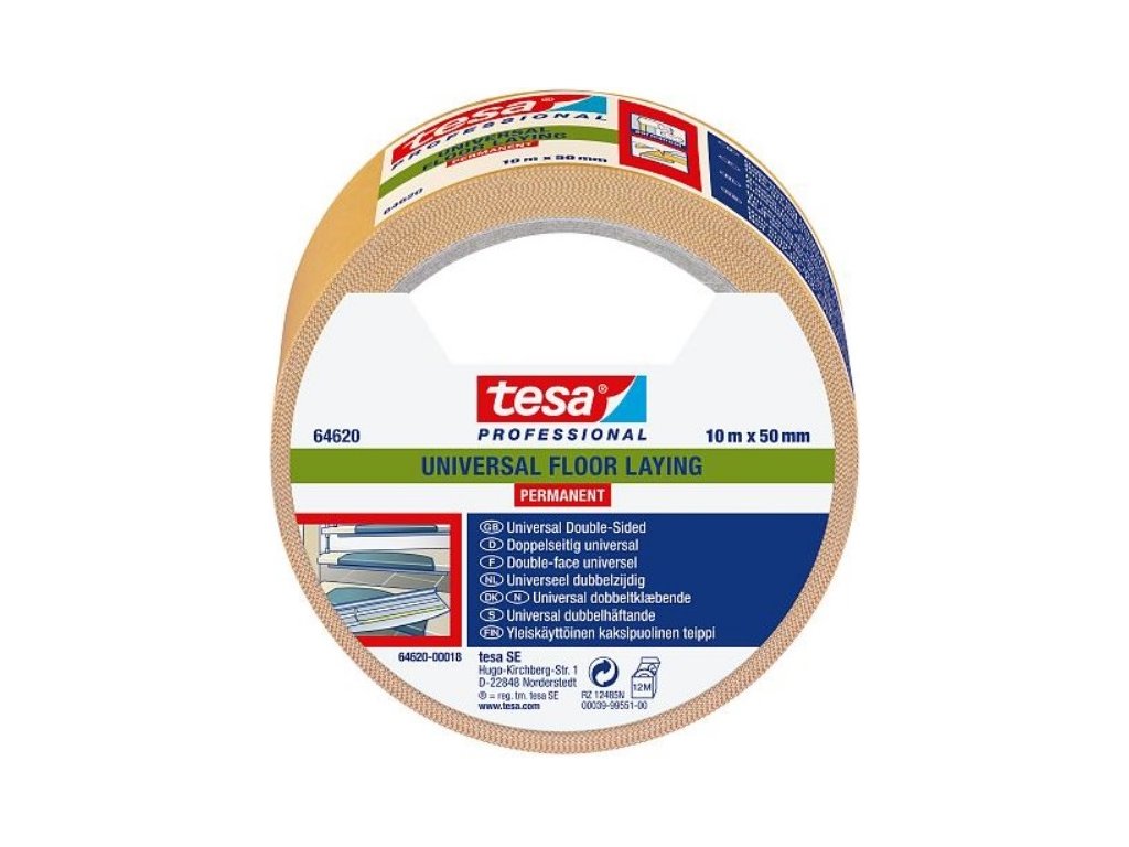 tesa® 64620 je transparentní oboustranná samolepicí páska, složené z bílého PP nosiče a lepidla ze syntetického kaučuku (hotmelt).