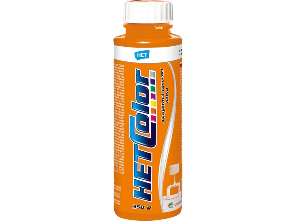 Barevná škála znázorňuje číselný kód s názvem odstínu a následující obrázky jeho výsledný vzhled po smísení s bílou bází nátěru v různých poměrech. Od neředěného Hetcoloru nalevo až po silně zředěný 1:100 napravo (Hetcolor : nátěrová hmota), resp. přidaný do barvy ve stopovém množství 10 ml na 1 l barvy (tj. koncentrace 1 %) k vytvoření pastelového odstínu.