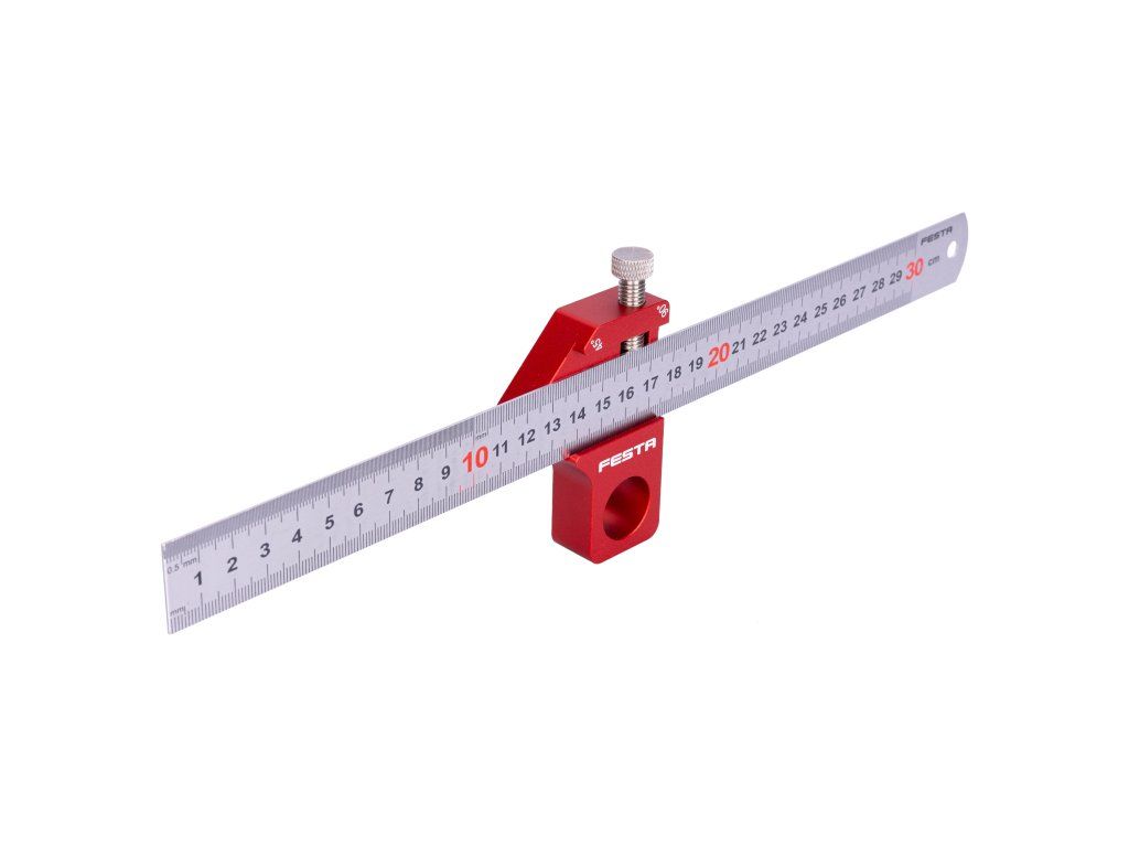 Tento přesný měřicí nástroj od značky FESTA chytře spojuje funkci klasického pravítka a úhelníku do jednoho praktického celku. Slouží k rychlému a spolehlivému rýsování, odměřování a přenášení pevných rozměrů. Díky inovativnímu posuvnému dorazu je ideálním pomocníkem pro truhláře, zámečníky, tesaře i pečlivé domácí kutily, kterým usnadňuje opakovaná měření bez chyb.Hlavní přednosti:• Vysoká odolnost: Samotné měřítko je vyrobeno z pevné nerezové oceli, která zaručuje ochranu proti korozi i mechanickému poškození a zajišťuje dlouhou životnost.• Multifunkční využití: Přídavné posuvné rameno umožňuje přesné měření a fixaci v úhlech 90° a 45°, čímž částečně nahrazuje klasický truhlářský úhelník.• Magnetický doraz s aretací: Rameno je vybaveno integrovaným magnetem a fixačním šroubem, díky čemuž pevně drží v nastavené poloze a neklouže po hraně materiálu.• Precizní čitelnost: Přehledná stupnice zajišťuje snadnou orientaci a vysokou přesnost při každodenním použití v dílně i na stavbě.Použití:Nerezové měřítko s posuvným dorazem využijete pro rychlé rýsování rovnoběžných čar podél hrany desky, kontrolu pravoúhlosti, nebo přenášení stejných vzdáleností u série obrobků. Je perfektní pro přesné zakracování a formátování dřevěných materiálů, rýsování pokosových řezů i pro zjišťování hloubky drážek.Technické parametry:• Typ: měřítko / pravítko s posuvným ramenem • Materiál měřítka: nerezová ocel• Délka stupnice: 300 mm• Úhly dorazu: 90° a 45° • Fixace ramene: magnetická s mechanickou aretací⚠ Upozornění:Pro zajištění dlouhodobě hladkého chodu a maximální přesnosti udržujte posuvnou hranu měřítka a kontaktní plochu magnetického dorazu v čistotě, bez usazeného prachu a kovových pilin.Nerezové měřítko s magnetickým dorazem FESTA (300 mm) je chytře navržený, univerzální rýsovací a měřicí nástroj. Představuje dostupnou a spolehlivou volbu pro každého, kdo potřebuje ulehčit a zrychlit práci při zaměřování a značení materiálů.Doplňkové parametry