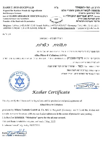Všechny produkty německého výrobce Mikro-Technik jsou založeny na organických vláknech, které příroda poskytuje v téměř neomezeném množství jako obnovitelnou surovinu. Jejich vysoce kvalitní 100% přírodní produkty z dřevních vláken a deriváty celulózy se svými funkcemi a vlastnostmi naleznete téměř ve všech oblastech každodenního života. Například v potravinářském, farmaceutickém a chemickém průmyslu, v domácích pracích a čisticích prostředcích, ve svařovacích drátech, v krmivu pro zvířata, při průzkumu a výrobě ropy, v těžebním průmyslu a mnoha dalších. Vlákna podléhají přísným kontrolám kvality a bezpečnosti od nákupu surovin až po konečný produkt. Certifikáty nezávadnosti HACCP, BALAL, KOSHER. | ![]() |