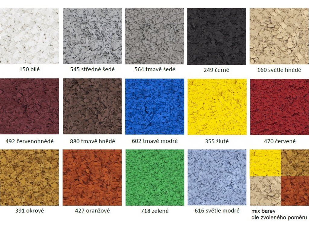 mix barev - sami si zvolte barvy ve směsi a jejich vzájemný poměr - např. černá : šedá : bílá 2 : 1 : 3 nebo červená : modrá 1 : 1, a pod. Barvy a poměr pak napište k produktu do poznámky v košíku.
