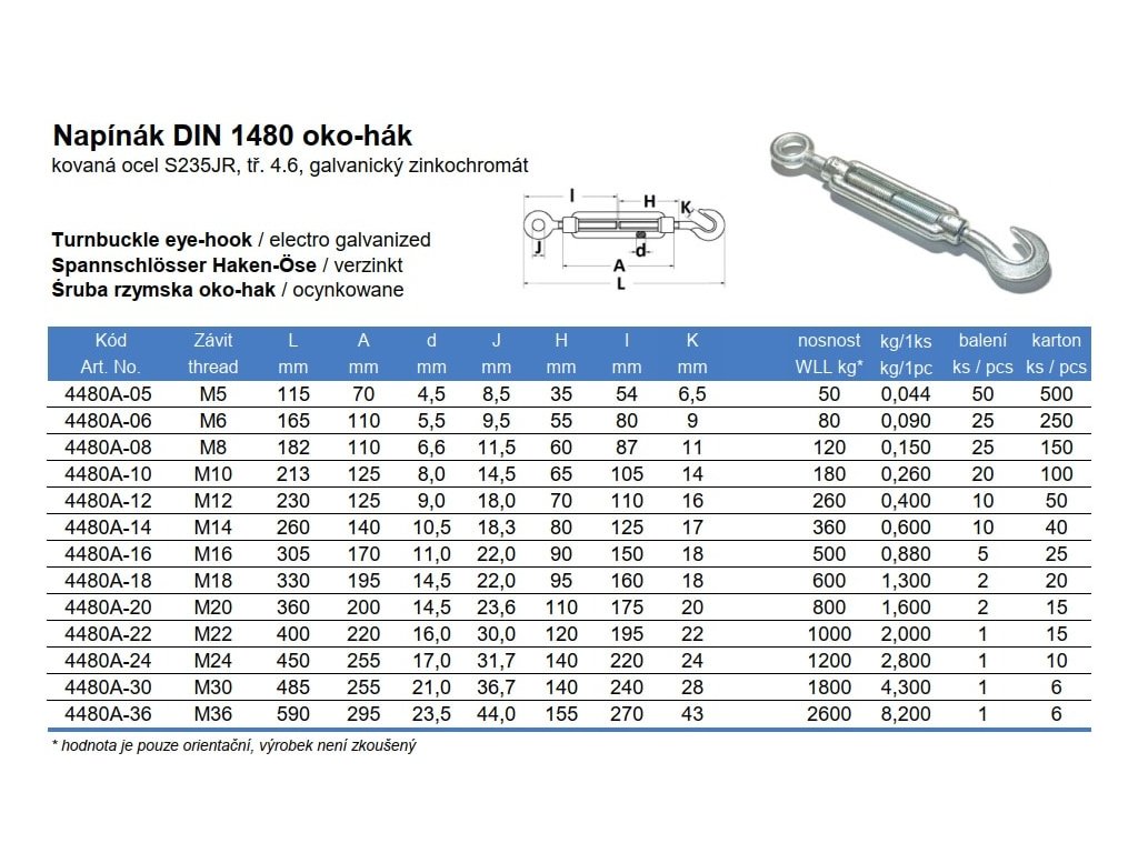Napínací šroub oko-hák 6×90 (135) mm, DIN 1480