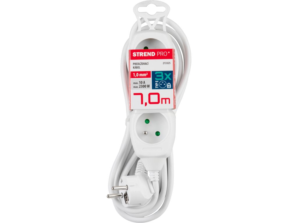 Prodlužovací kabel, 7m, 3 zásuvky, 3×1mm, bílý, STREND PRO