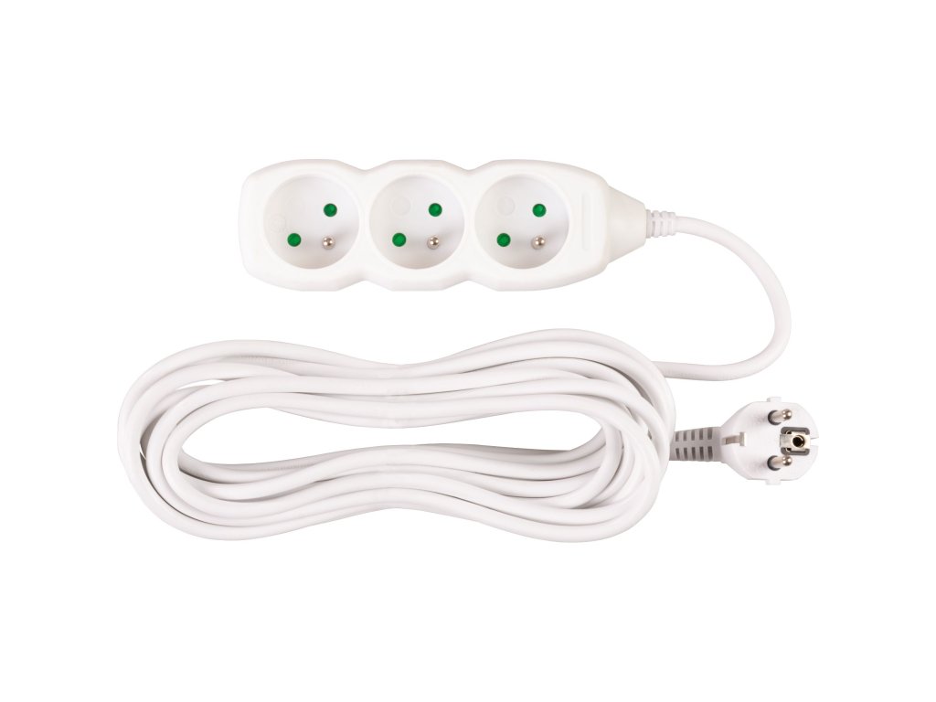 Prodlužovací kabel 7 m, 3 zásuvky, bílý – flexibilní řešení pro domácnost i kancelářPotřebuješ spolehlivě připojit více spotřebičů dál od zásuvky Prodlužovací kabel s délkou 7 metrů a třemi zásuvkami ti poskytne dostatečný dosah i prostor pro pohodlné zapojení elektroniky.Hodí se jak do domácnosti, tak do kanceláře, dílny nebo na chatu. Tři zásuvky umožňují připojit více zařízení současně – například televizi, notebook, lampu a nabíječku.Hlavní výhody:• 3 zásuvky pro připojení více zařízení• 7metrový kabel pro pohodlné umístění i dál od zásuvky• Kompaktní provedení vhodné i do stísněných prostor• Odolný bílý plast pro univerzální použití• Snadné a bezpečné používáníIdeální využití:• Rozvod napájení v místnosti, kde je zásuvka daleko• Připojení spotřebičů bez použití rozdvojek• Flexibilní použití v domácnosti, kanceláři nebo dílněDoplňkové parametry