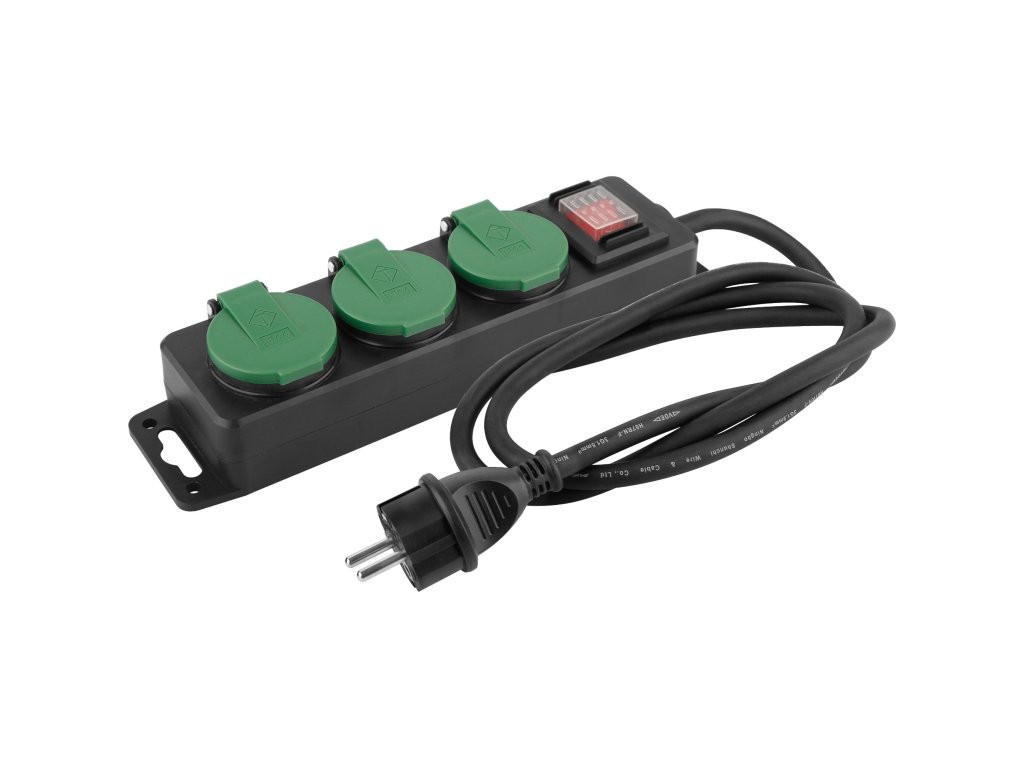 Prodlužovací kabel venkovní s vypínačem, 5m, 3 zás., 3x1,5mm, černý, IP44, STREND PRO