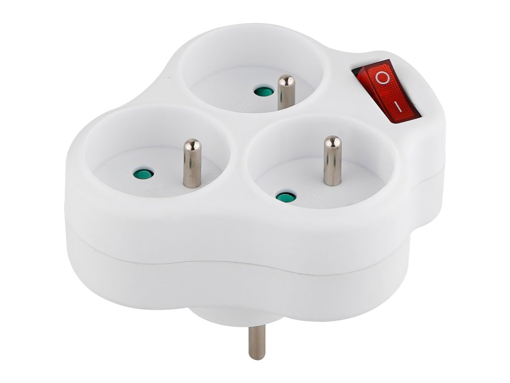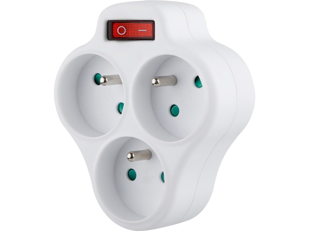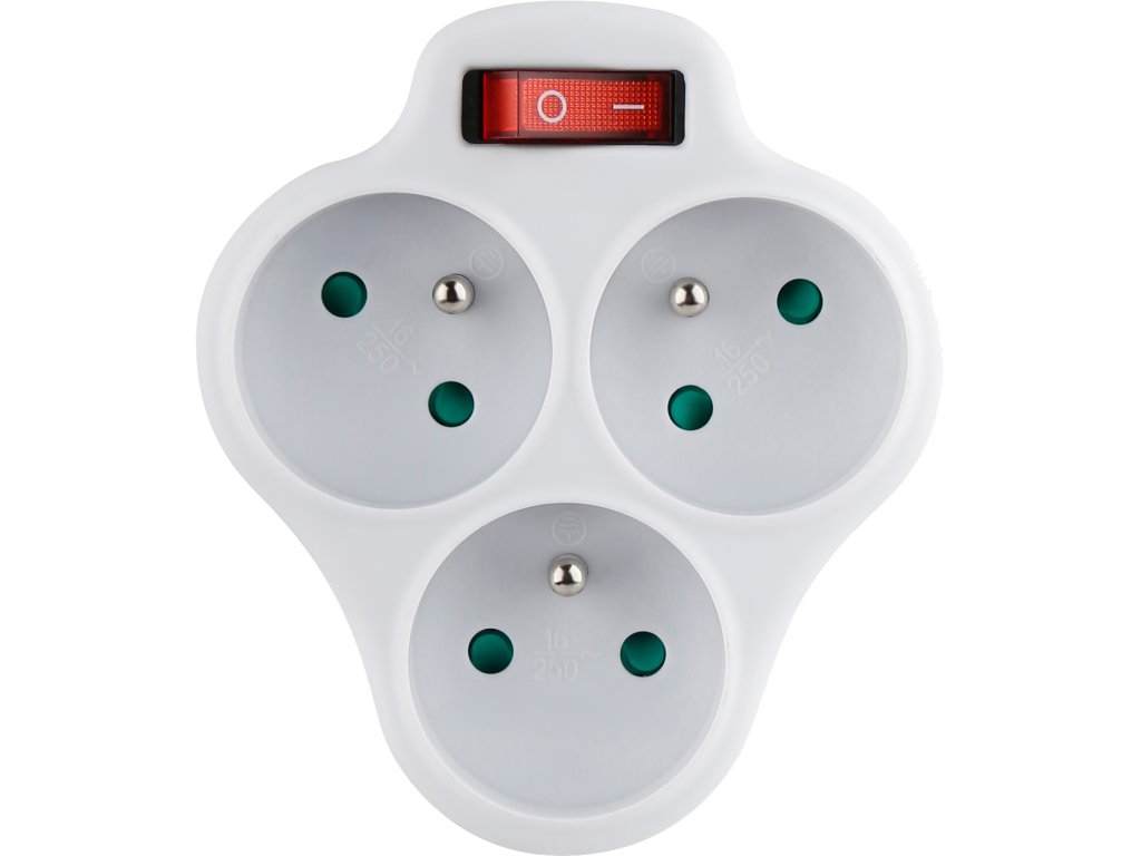 Zásuvka rozbočovací s vypínačem, 3x kulatá, max. 3680W, STREND PRO