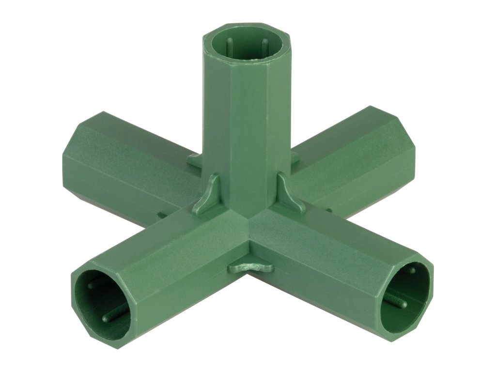 5cestná spojka na zahradní opěrné tyče (5-side), 16mm, STREND PRO 5cestná spojka Strend Pro (5-side) pro zahradní opěrné tyče o průměru 16mm představuje špičkový konektor pro tvorbu nejkomplexnějších prostorových konstrukcí na zahradě. Umožňuje spojit více tyčí v jednom uzlu, což je ideální pro stavbu šikmých, rozbíhajících se opěr, jehlanových struktur nebo složitých opěrných klecí. Zahrádkářům a pěstitelům přináší maximální svobodu při vytváření spolehlivých podpůrných systémů pro těžší popínavé rostliny. Hlavním benefitem je vytvoření dokonale pevných a bezpečných spojů bez složitého svazování provázky.Hlavní přednosti:• Pokročilé rozvětvení (5-side): Konstrukce umožňuje tvorbu složitých 3D struktur s rozbíhajícími se oporami, což je ideální pro centrální uzly nebo střešní vrcholy pěstebních klecí.• Vysoká stabilita: Přesná kalibrace pro tyče o průměru 16 mm zajišťuje pevné ukotvení každé zasunuté tyče, takže je zaručeno pevné a bezpečné spojení i pod větší zátěží.• Odolnost proti počasí: Materiál je navržen tak, aby spolehlivě odolával slunci, vlhkosti i běžným povětrnostním vlivům po celou dobu venkovní pěstební sezóny.• Snadná instalace: Konektor stačí jednoduše nasunout na tyče. Rychle tak nahradíte jakýkoliv spojovací materiál a zrychlíte stavbu celé konstrukce.Použití:✔ Tvorba centrálních spojů a vrcholů u jehlanových opěrných struktur pro popínavé fazole nebo ostružiny.✔ Stavba komplexních 3D roštů, složitějších ochranných klecí a vodicích systémů pro rajčata a těžší plodiny.✔ Propojování šikmých a rozbíhajících se nosných prvků při konstrukci malých zahradních fóliovníků a krytů.Technické parametry:• Typ spojky: 5cestná (5-side / pro rozvětvené spoje)• Pro průměr tyče: 16mm• Určení: venkovní zahradní konstrukce• Kompatibilita: zahradní opěrné tyče o shodném průměru⚠ Upozornění:Před nákupem si ověřte přesný průměr vašich stávajících opěrných tyčí. Spojka je kalibrována přesně na průměr 16 mm, aby dokonale plnila svou fixační funkci.Spojka Strend Pro 5-side (16mm) je nejuniverzálnějším prvkem z řady zahradních konektorů. Poskytne vám možnost realizovat i ty nejnáročnější opěrné konstrukce přesně na míru vaší zahradě a dodá vašim pěstitelským projektům profesionální pevnost a stabilitu.Doplňkové parametry