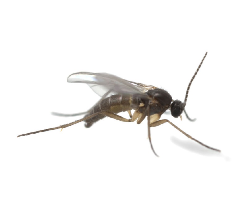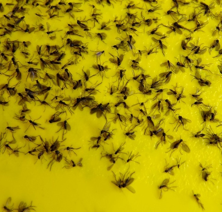 Smutnice (Bradysia paupera). Dospělé exempláře smutnic měří 2-4 mm a připomínají drobné mušky, podobné komárům. Mají rády vlhké prostředí a často se objevují v zimních měsících poblíž květináčů a výsevů. Často se také do domácností dostávají s nakoupeným substrátem nebo rostlinami.