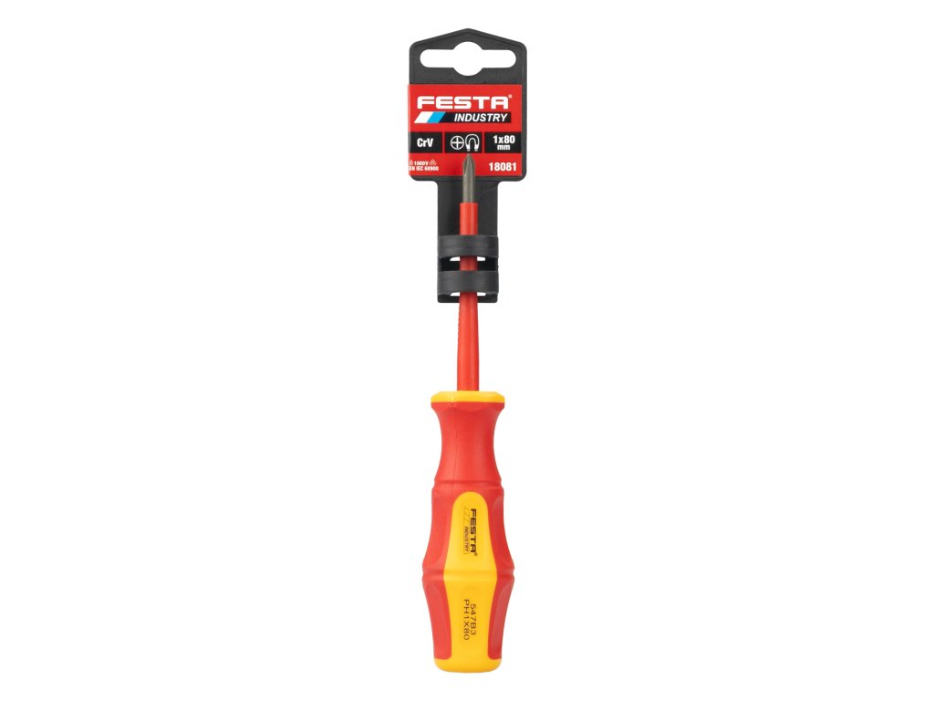 Šroubovák VDE CrV PH1×80 mm 1000 V, magnetický hrot, rukojeť PP/TPR