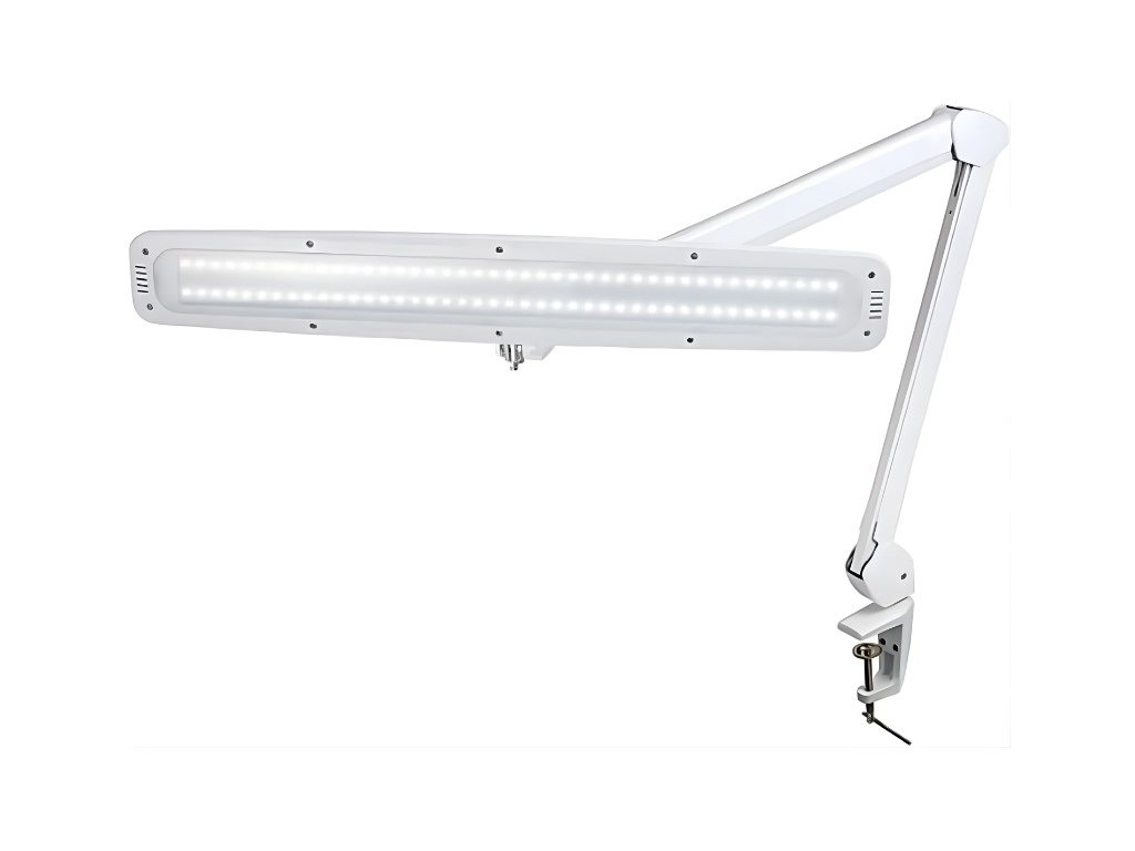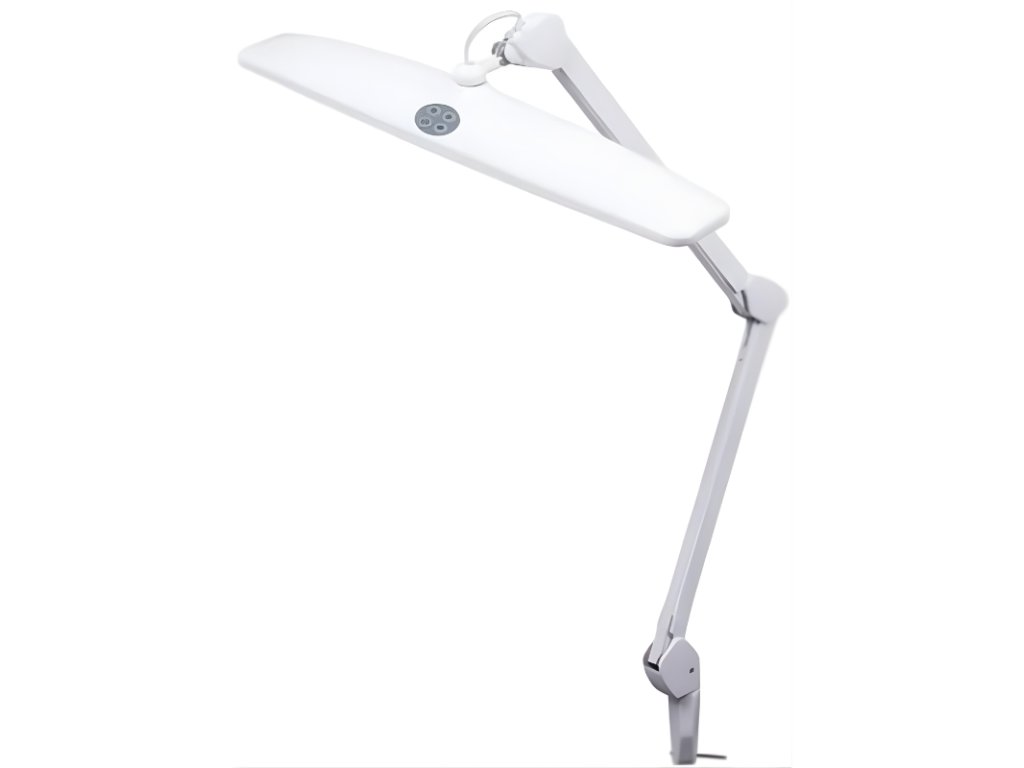 NEWBRAND® Stolní LED lampa 21 W · 1100 lm · 6500 K PROFESIONÁLNÍ OSVĚTLENÍ Na co slouží: lokální pracovní osvětlení bez stínů Pro koho: kontrola jakosti, laboratoře, dílny Hlavní přínos: stabilní světlo + přesné polohování Výhody v praxi• Plynulé stmívání dle aktuální činnosti • Pantografové rameno otočné o 360° s velkým dosahem • Opálový kryt eliminuje oslnění a tvrdé stíny • Bezhlučný provoz, žádná údržba • Stabilní uchycení ke stolu pomocí příruby Technické parametry