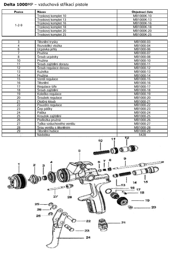 Stříkací pistole DELTA DL 1000MP vzduchová, s horní nádobkou 600 ml