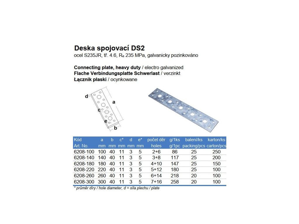 Plech spojovací DS2, 180x40mm, 3,0mm, ZN