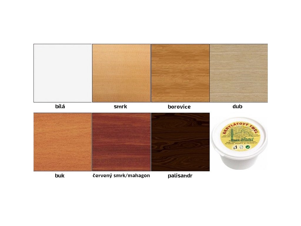 Velikosti balení: plastové dózy 200 g, (odstín buk 200 g, 400 g, 700 g)