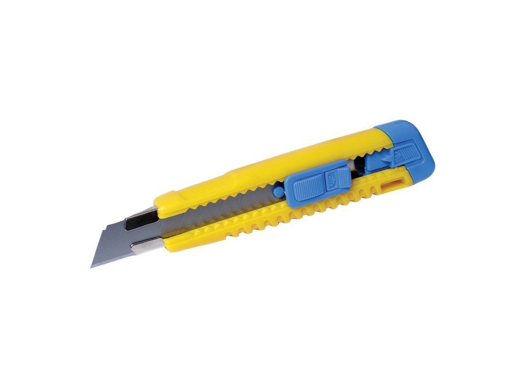 Praktický nůž na ulamovací břity s pevným plastovým tělem. Nůž je navíc vybaven ocelovým vedením břitu, který prodlužuje životnost celého nože. Posuv břitu se provádí plastovým posuvníkem s aretací. Šířka čepele: 18 mm Materiál těla (rukojeti): plast Ocelová výztuha: ANO Posuv / aretace: posuvník s aretací Extra: břit navíc, zásobník na 1 břit uvnitř nožeDoplňkové parametry