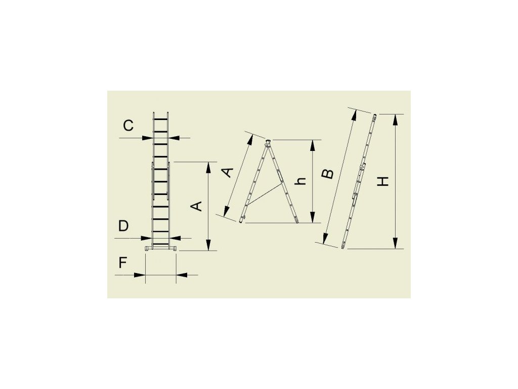 stavební práce. Díky dvoudílné konstrukci jej lze používat jako opěrný žebřík i jako štafle, což zajišťuje vysokou variabilitu použití v interiéru i exteriéru.Žebřík je vyroben z kvalitních hliníkových profilů, které zajišťují nízkou