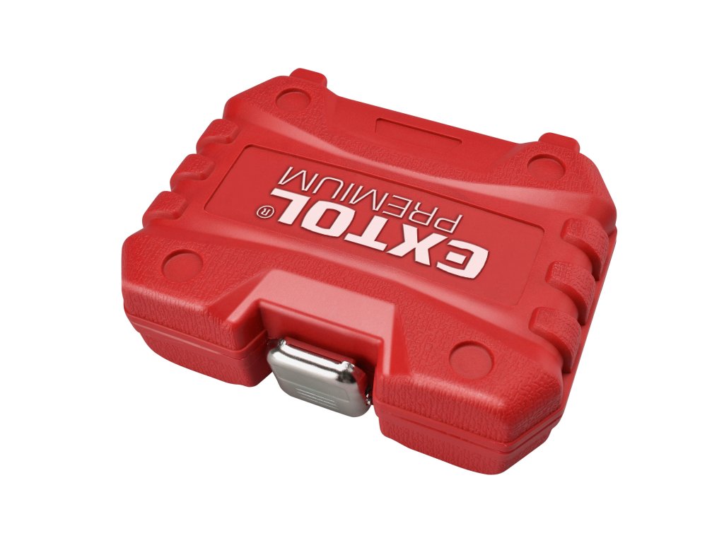 Sada speciálních hlavic EXTOL PREMIUM (obj. 8818141) je určena pro rychlé a bezpečné povolování poškozených, stržených nebo zarezlých šroubů a matic. Díky unikátní vnitřní geometrii se hlavice při záběru zakusují do povrchu šroubu, čímž výrazně zvyšují přenos síly a zabraňují dalšímu stržení hran.Vyrobené jsou z vysoce odolné oceli CrMo, která snáší extrémní zatížení a je ideální pro profesionální použití i náročné dílenské práce.Celá sada je přehledně uložena v pevném plastovém kufru, který usnadňuje transport i organizaci.Klíčové vlastnosti:• speciální vnitřní profil pro zakousnutí do poškozených šroubů a matic• ideální pro stržené, zarezlé nebo deformované šrouby• vysoce pevná chrom-molybdenová ocel (CrMo) – maximální odolnost a životnost• kompatibilní se čtyřhranem 3/8" • velikosti 10–19 mm pro široké spektrum použití• pevný plastový kufr pro přehledné uložení a snadné přenášení✔ povolování stržených nebo zarezlých šroubů✔ autoservisní práce, opravy strojů a zařízení✔ údržba, servis, dílny, montáže✔ ideální tam, kde běžná hlavice prokluzuje a není schopna přenést dostatečnou síluTechnické parametry:• Upínání: 3/8"• Rozsah hlavic: 10–11–12–13–14–15–16–17–19 mm• Materiál: CrMo (chrom-molybdenová ocel)• Počet kusů v sadě: 10• Balení: plastový kufrSada hlavic EXTOL PREMIUM 3/8", 10–19 mm (10 ks) je profesionální řešení pro povolování poškozených a zarezlých šroubů. Speciální vnitřní geometrie zajišťuje pevný záběr a přenáší vysoký krouticí moment bez prokluzu. Hlavice z oceli CrMo garantují dlouhou životnost a spolehlivost i při tvrdém nasazení. Perfektní výbava pro autoservisy, údržbu, dílny i domácí opraváře.Doplňkové parametry