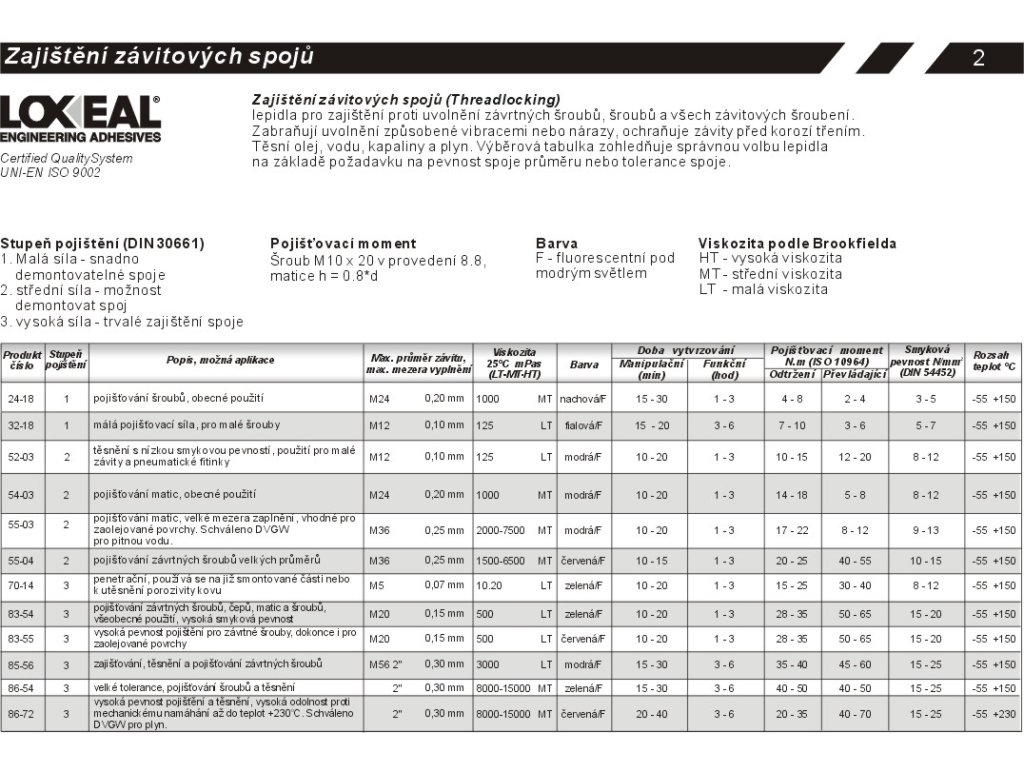 - K vysokopevnostnímu zajištění a utěsnění závitů.